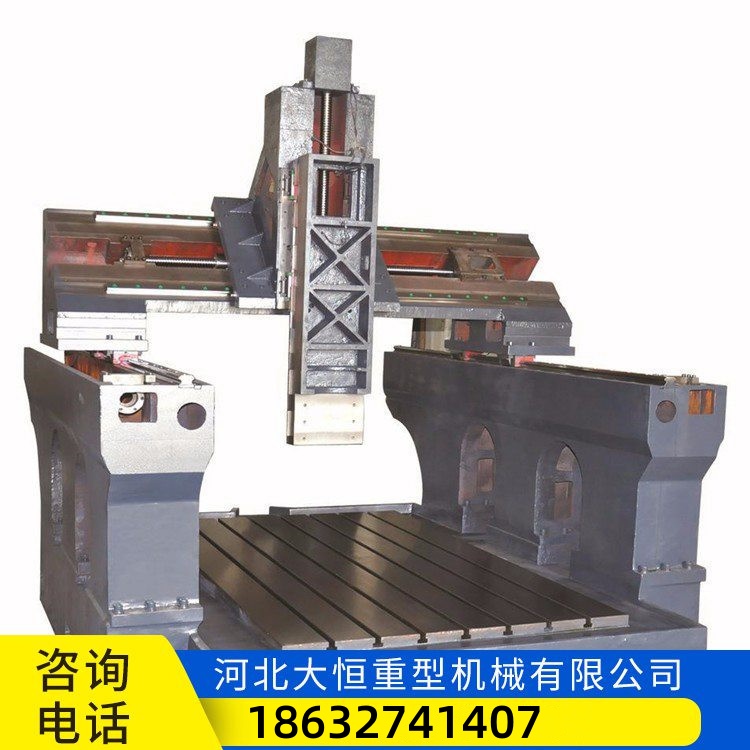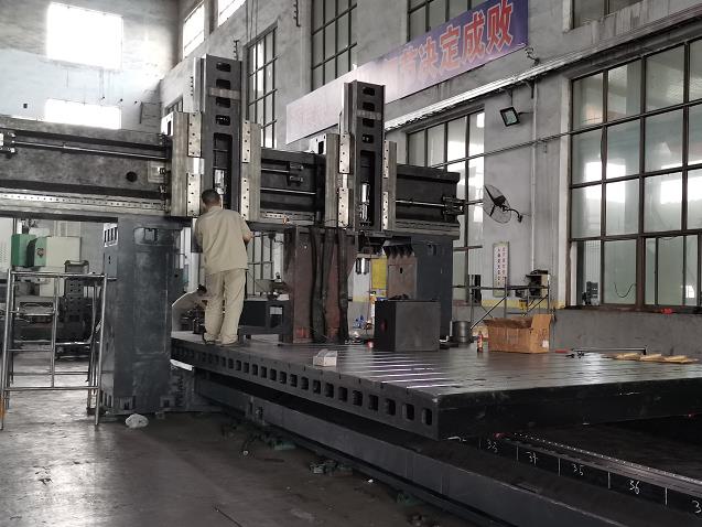 機(jī)床的結(jié)構(gòu)特點(diǎn):固定式床身、工作臺(tái)移動(dòng);主軸箱隨溜板上下移動(dòng);亦可沿橫梁左右移動(dòng)實(shí)現(xiàn)三軸聯(lián)動(dòng);配置18.5KW主鏜銑頭。機(jī)床主銑頭具有銑削、鏜削、鉆削、锪孔等功能,適用于機(jī)械、鋼鐵、能源、汽車、航空航天、兵器、船舶等行業(yè)的大、中型零件的加工。配備附件銑頭后可實(shí)現(xiàn)工件的一次裝夾,安裝直角銑頭可五面加工,一機(jī)多用,提高了工件的。